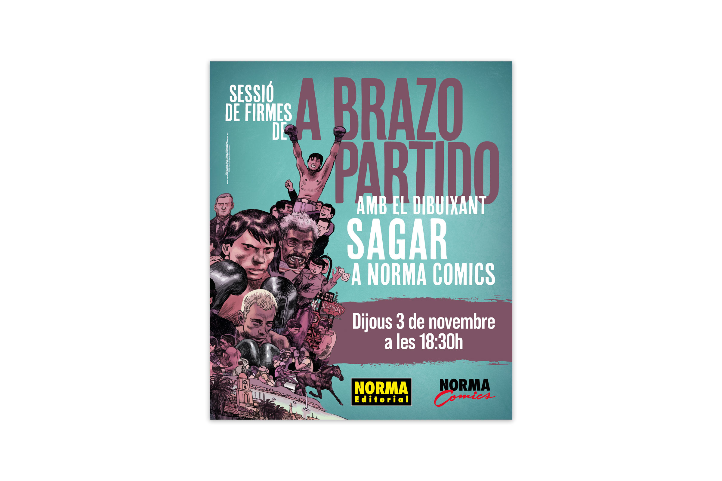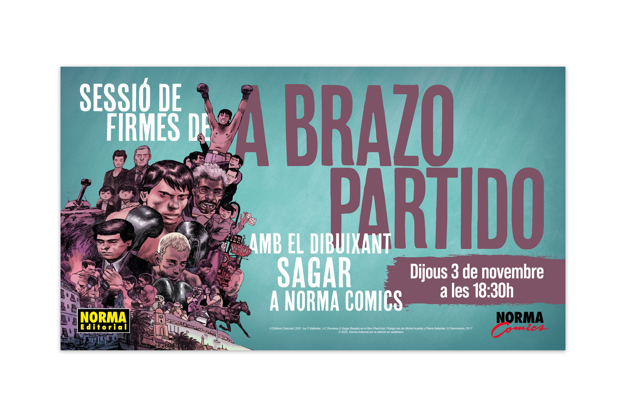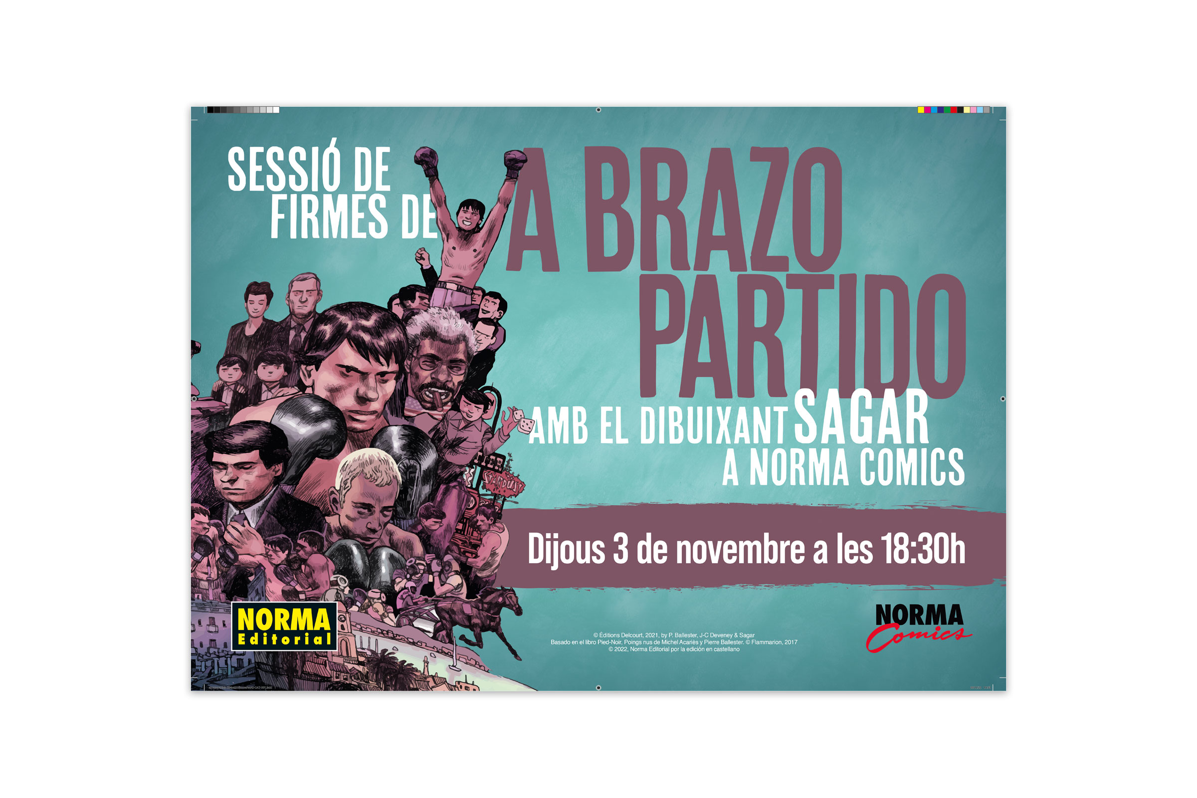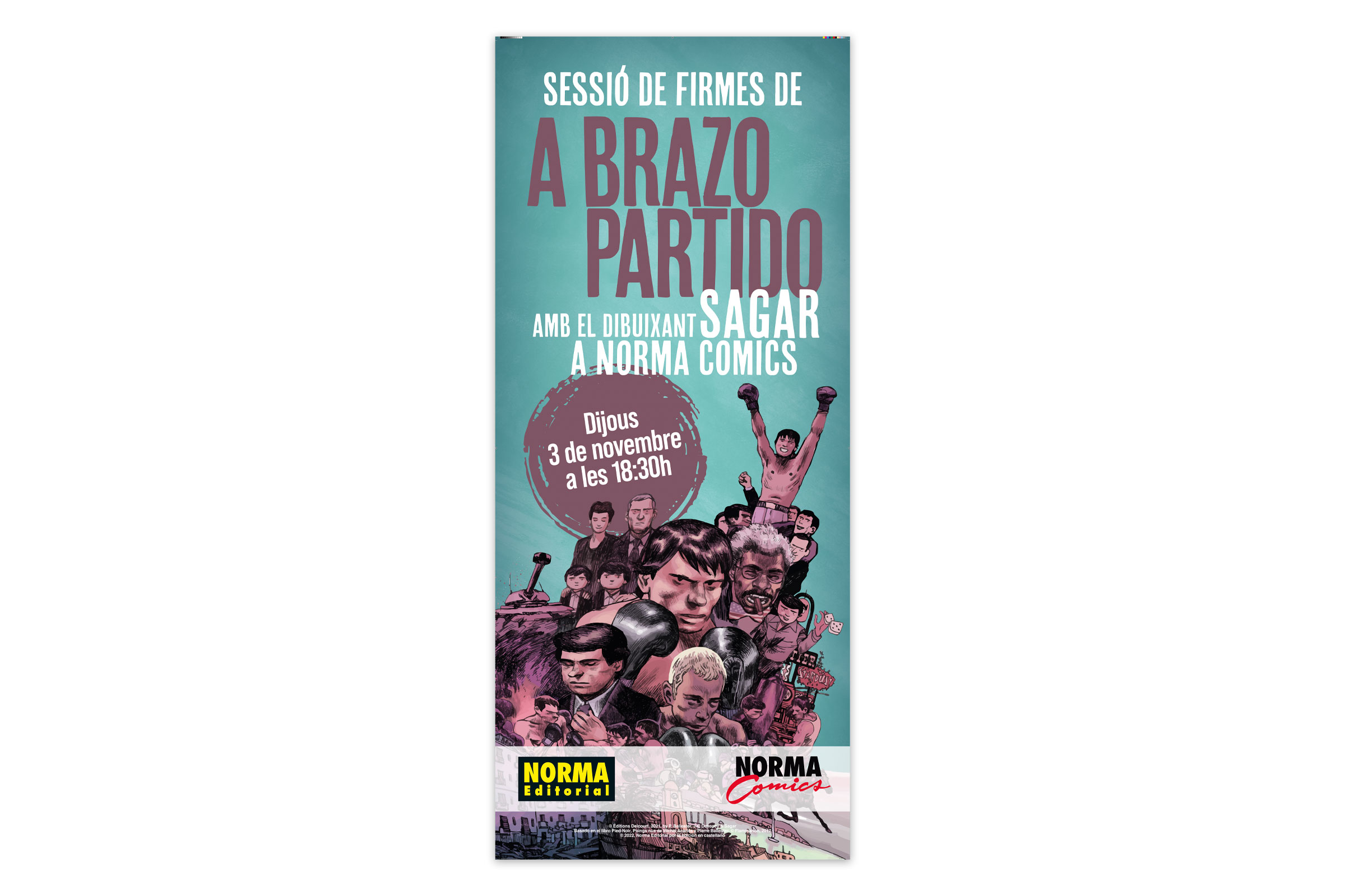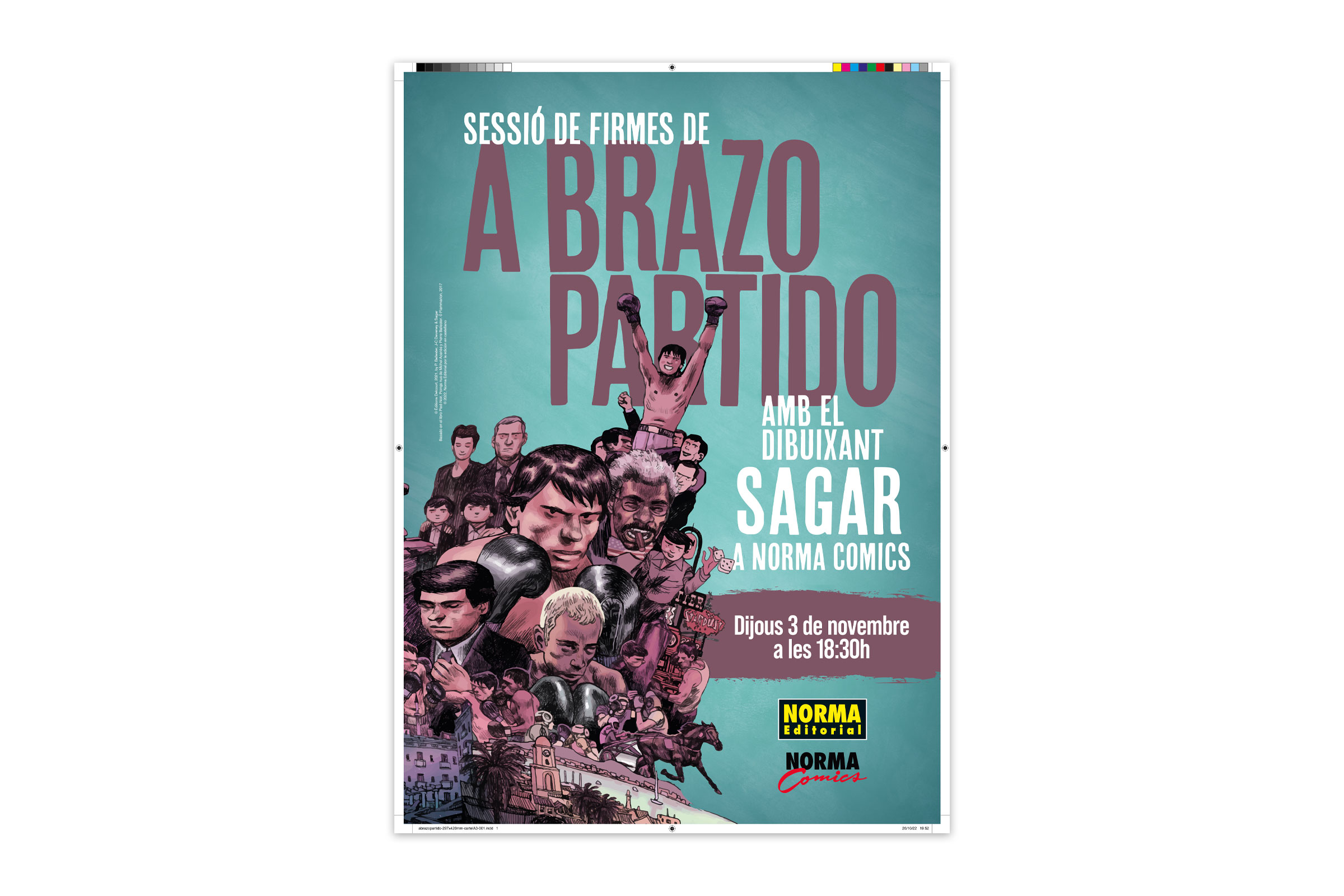 Gráficas para impresión para la sesión de firmas del autor del cómic "A brazo partido", Norma Cómics, 2022.