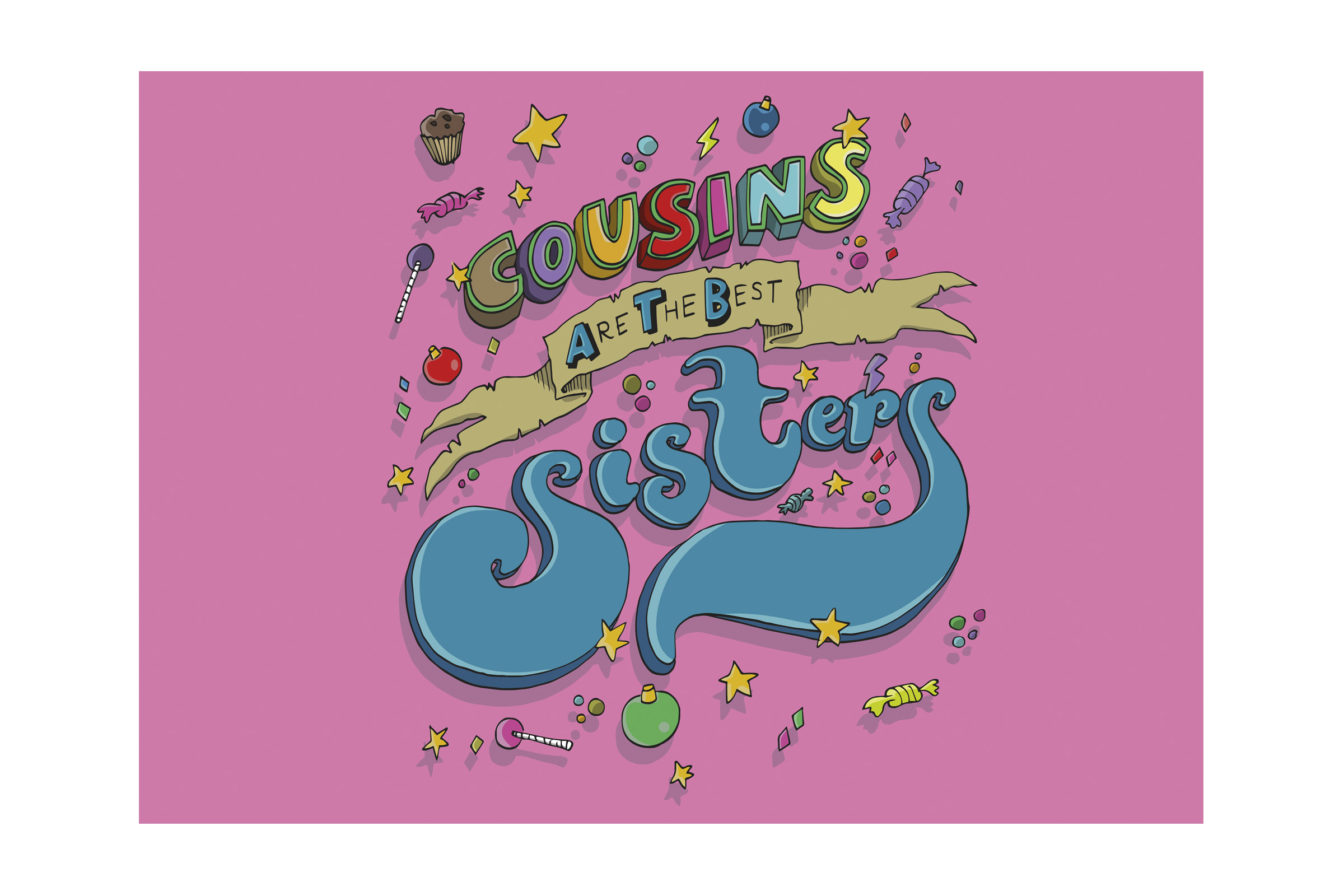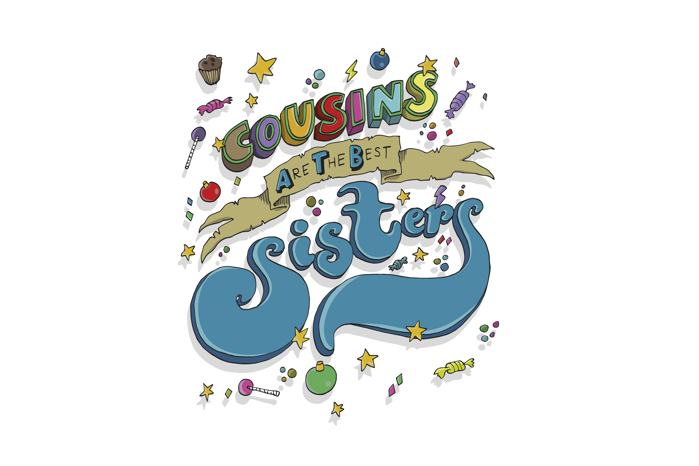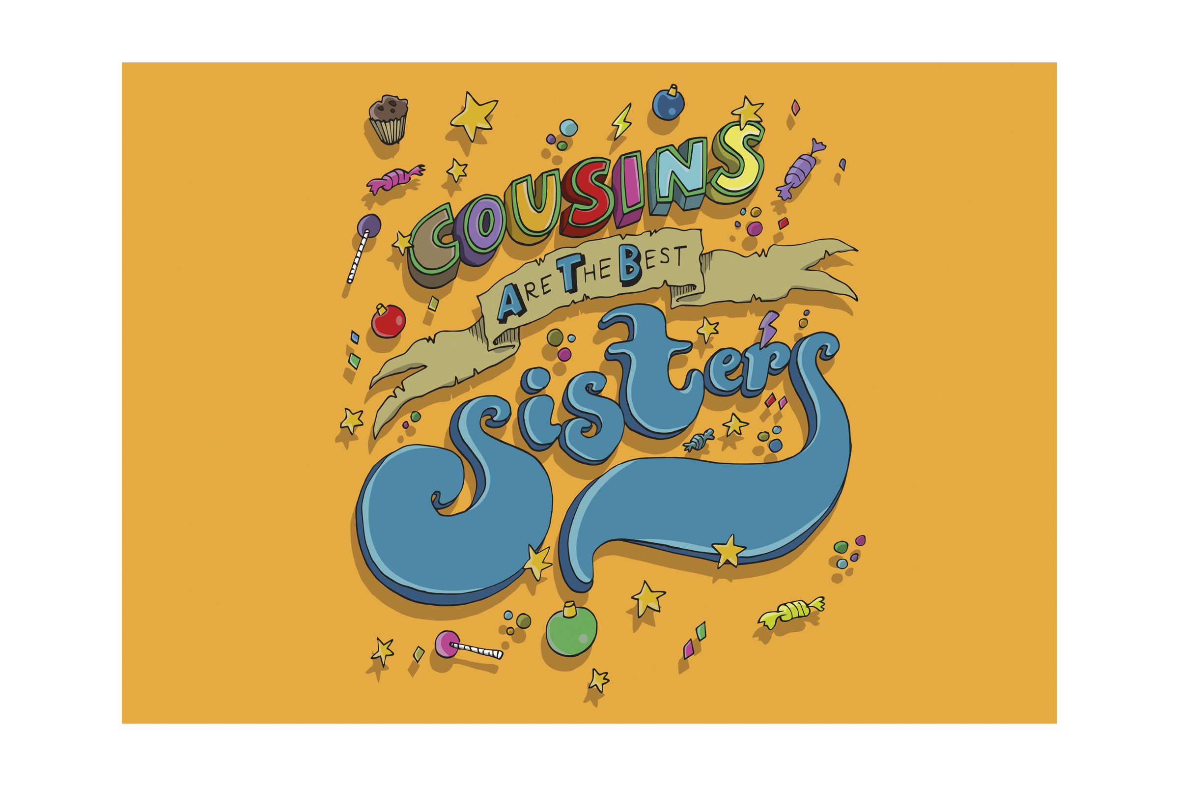 Adaptación de un lettering con el nuevo texto "Cousins are the Best Sisters". Ilustración y retoque/color en Illustrator.