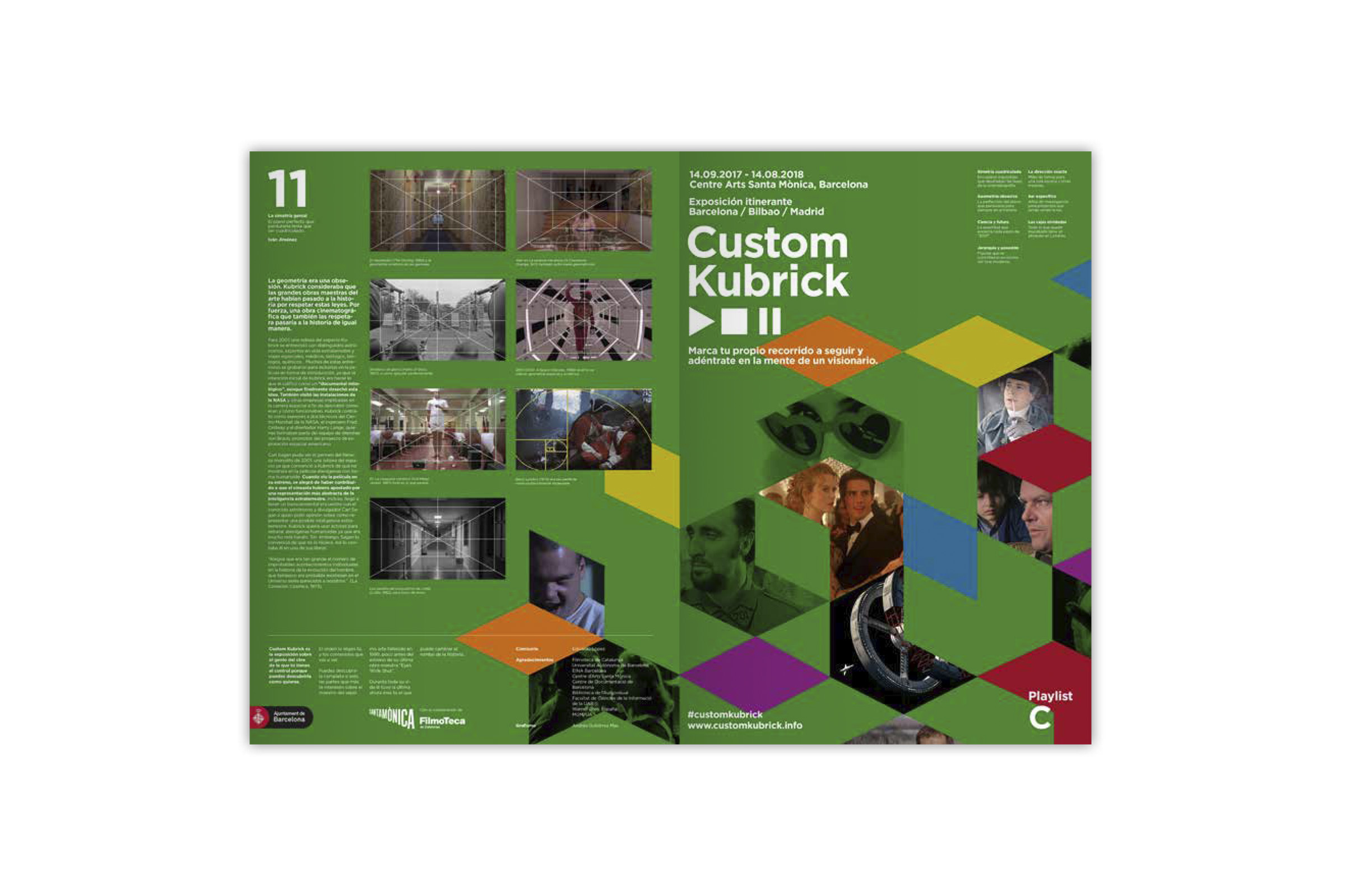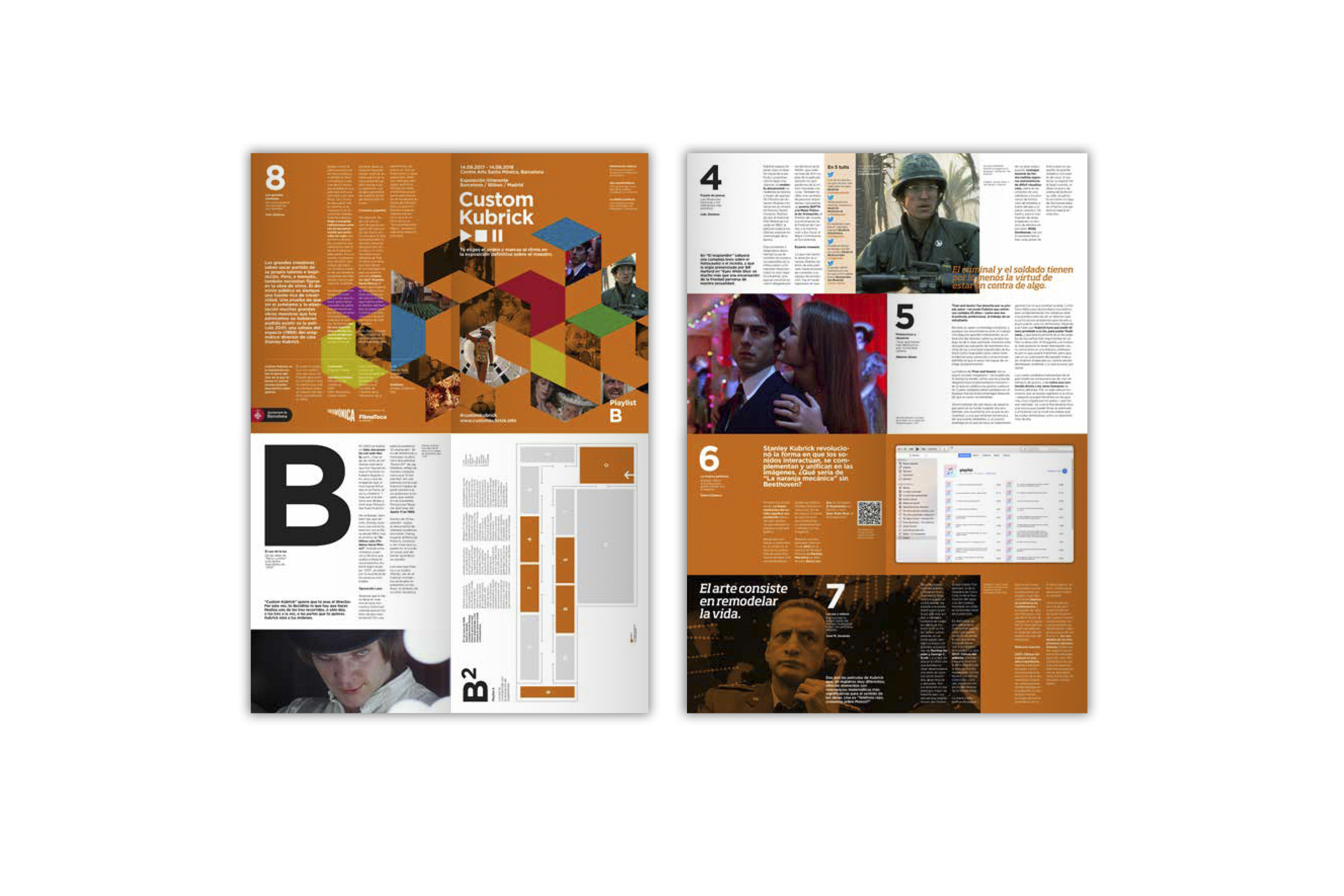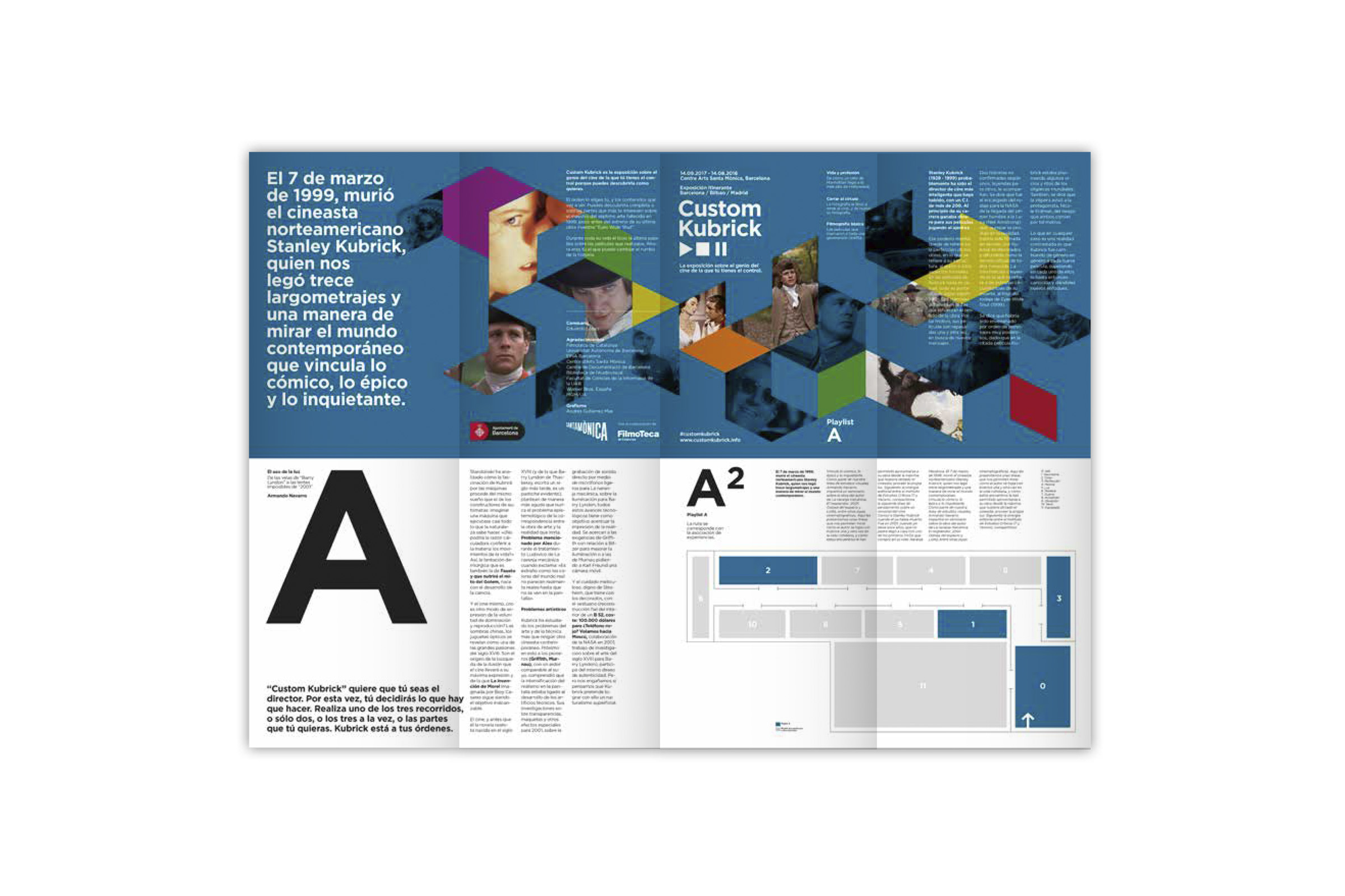 Proyecto final del Máster en Diseño Gráfico y Digital en EINA (Barcelona), 2017. Catálogos desplegables para una exposición sobre la figura del director Stanley Kubrick titulada "Custom Kubrick".
