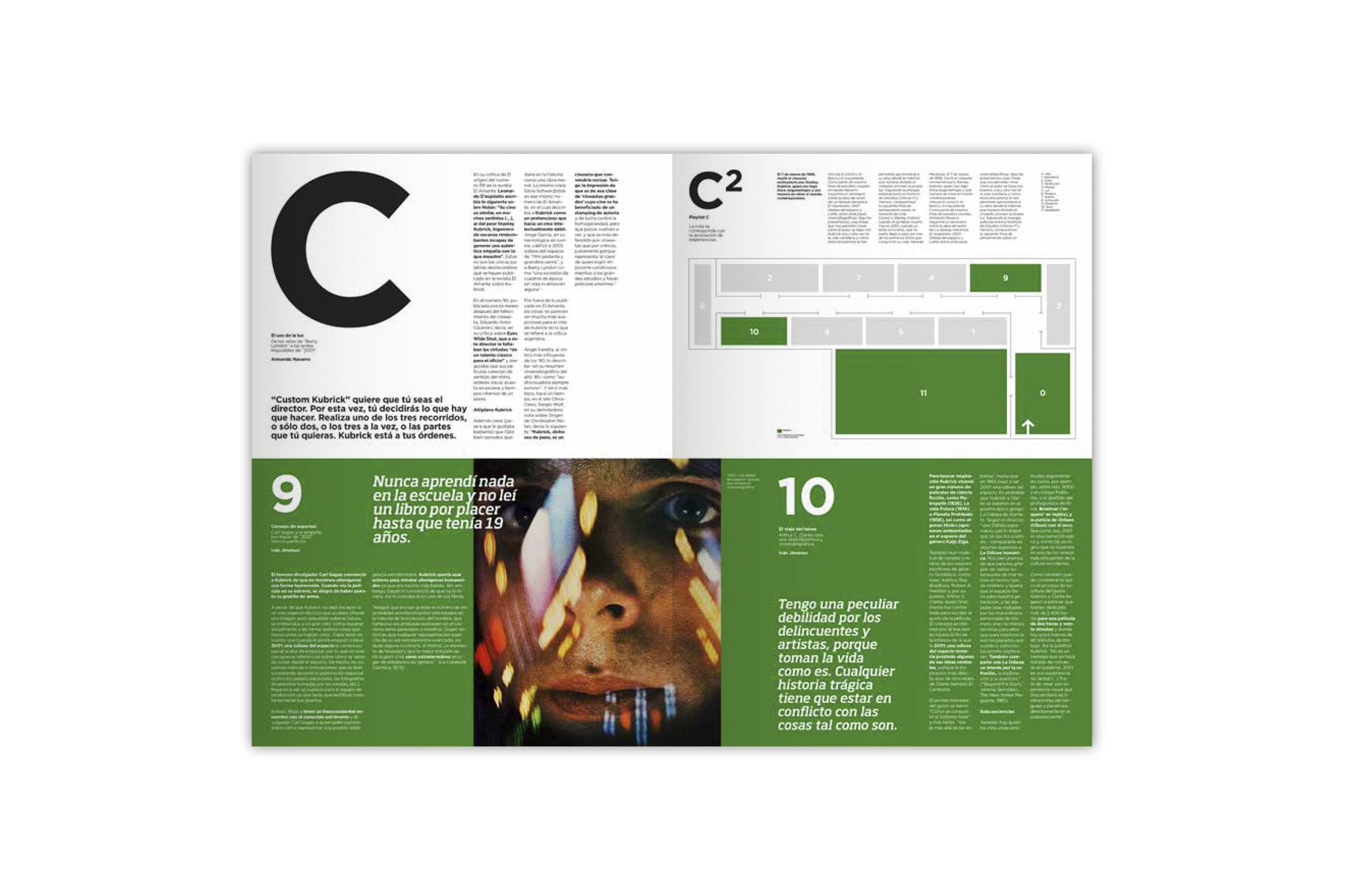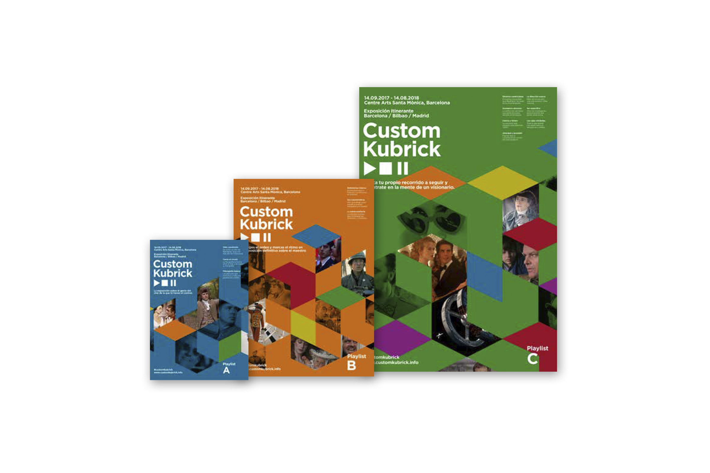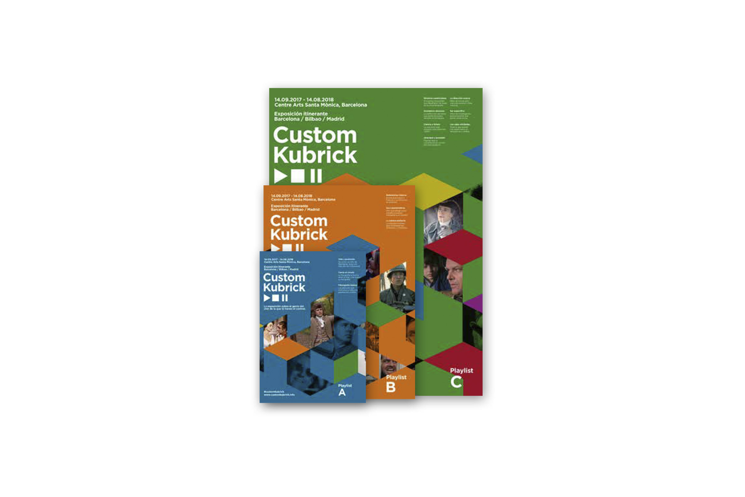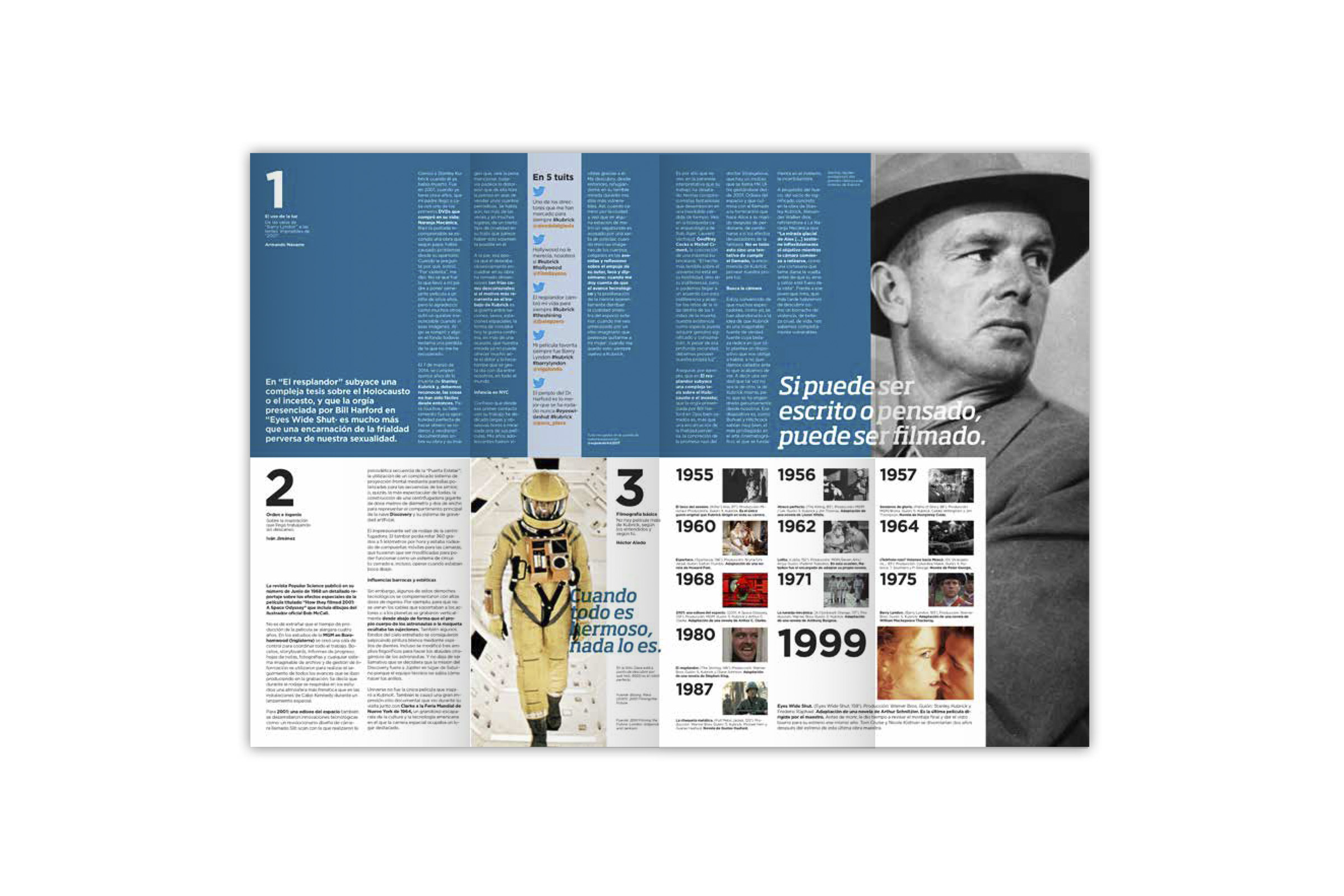 Proyecto final del Máster en Diseño Gráfico y Digital en EINA (Barcelona), 2017. Catálogos desplegables para una exposición sobre la figura del director Stanley Kubrick titulada "Custom Kubrick".