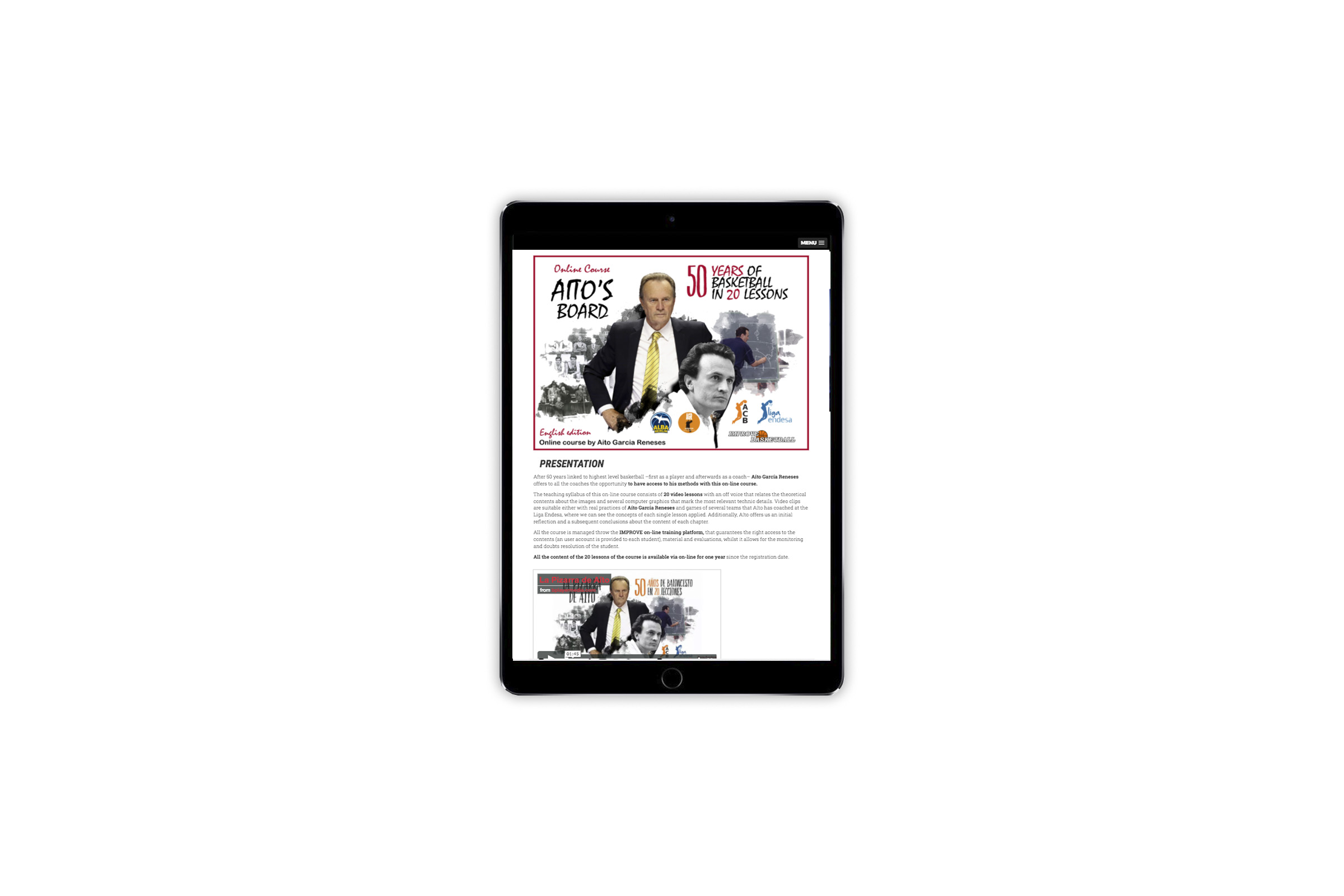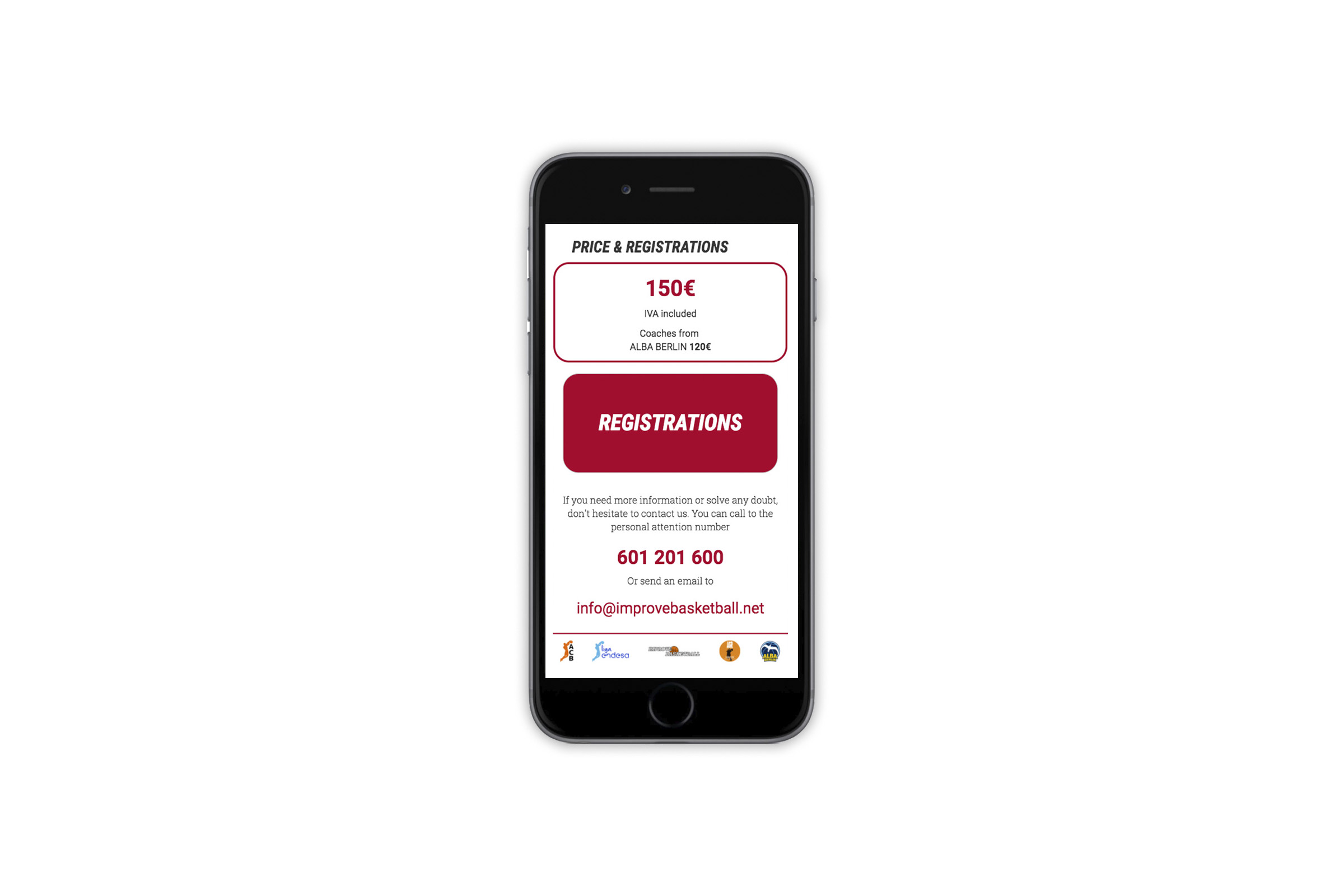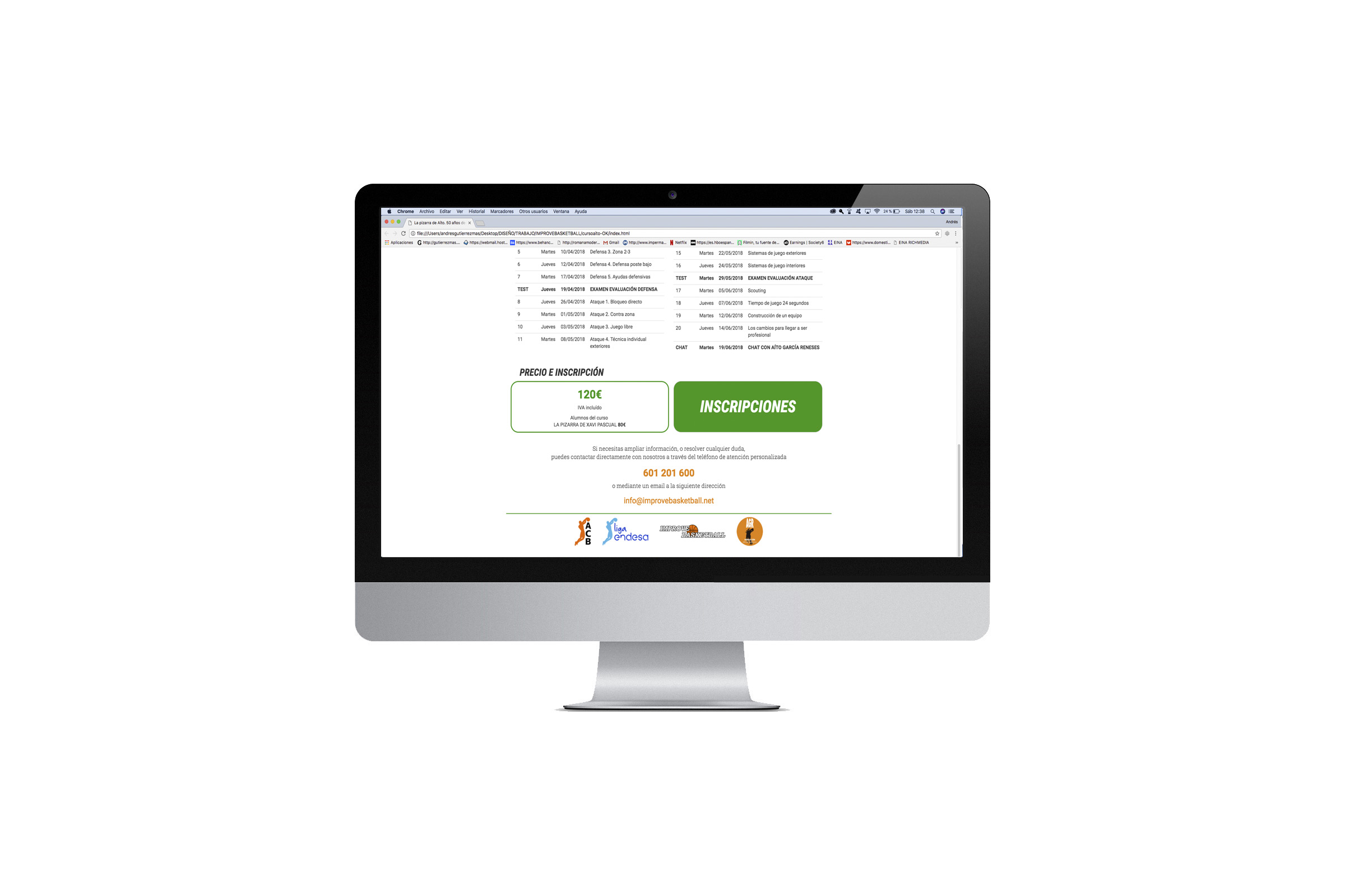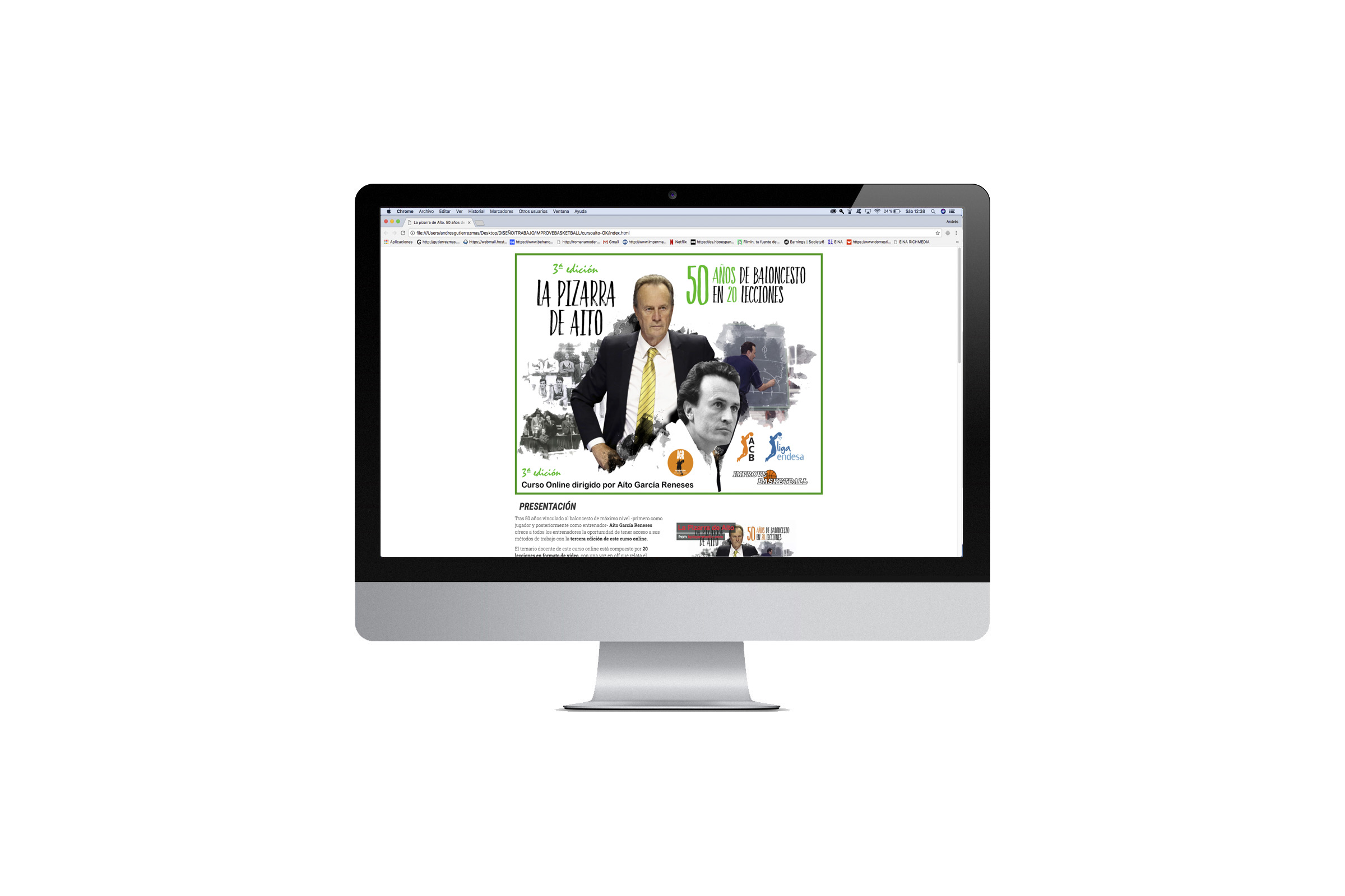 Landing alojada en la web de la ACB. Se tomó un diseño ya creado por la propia empresa Improve Basketball y se adaptó para la landing. Se creó una en castellano y otra landing en inglés.