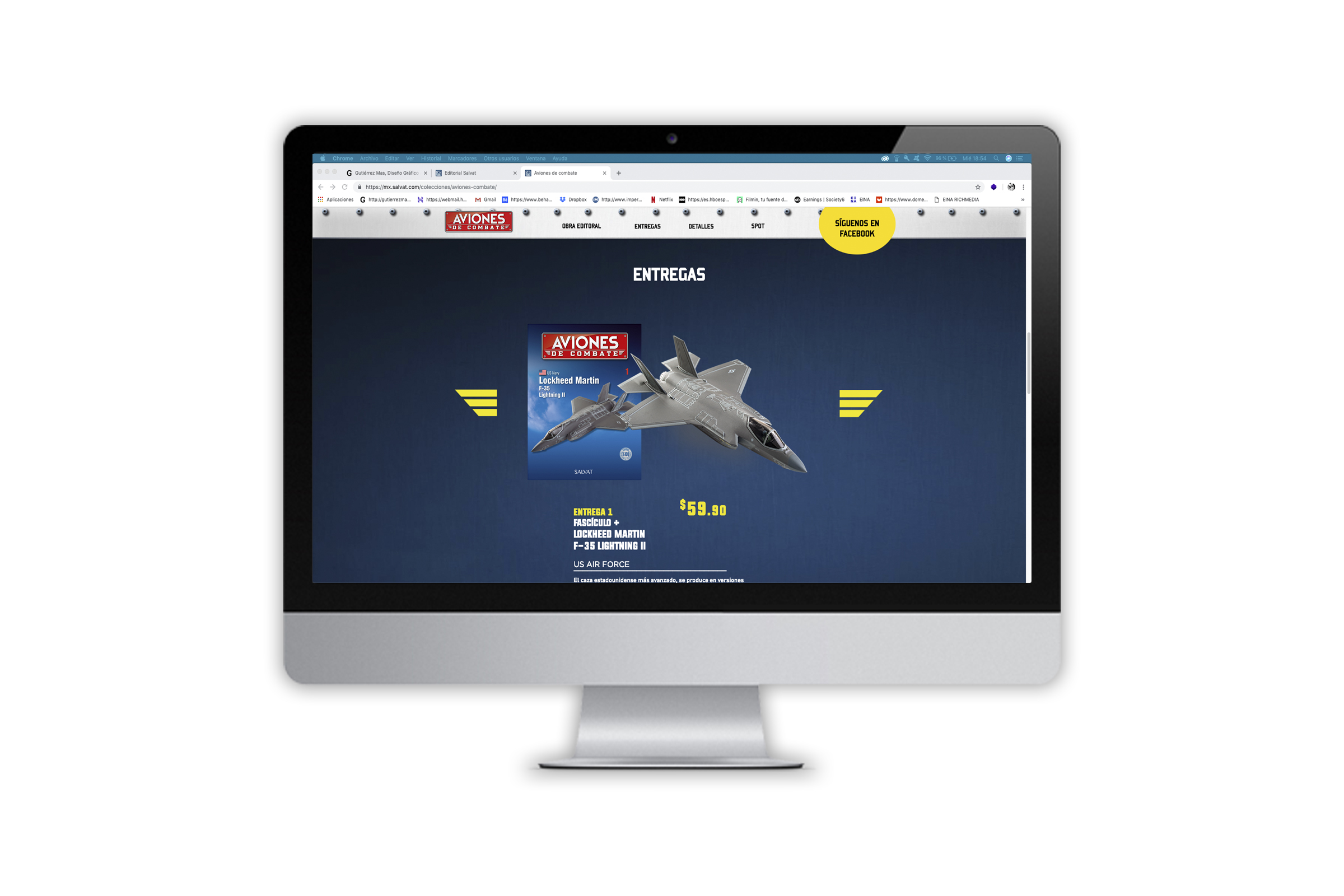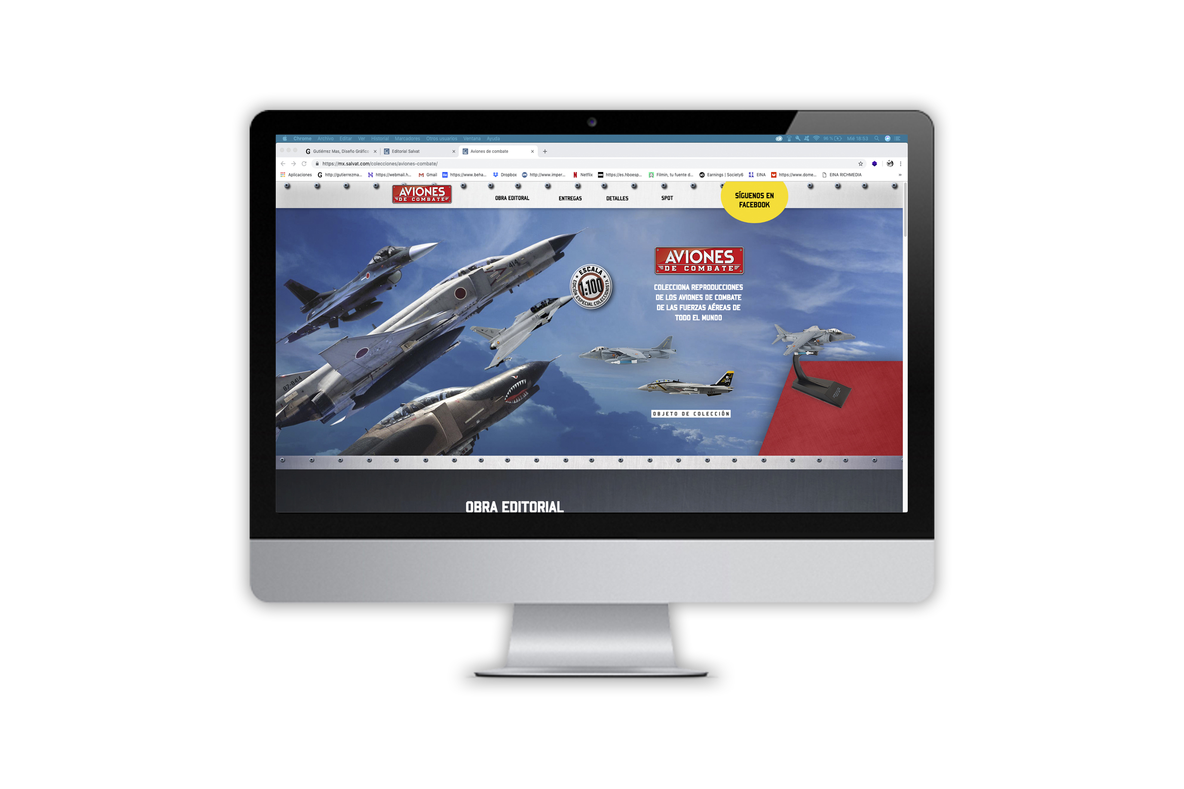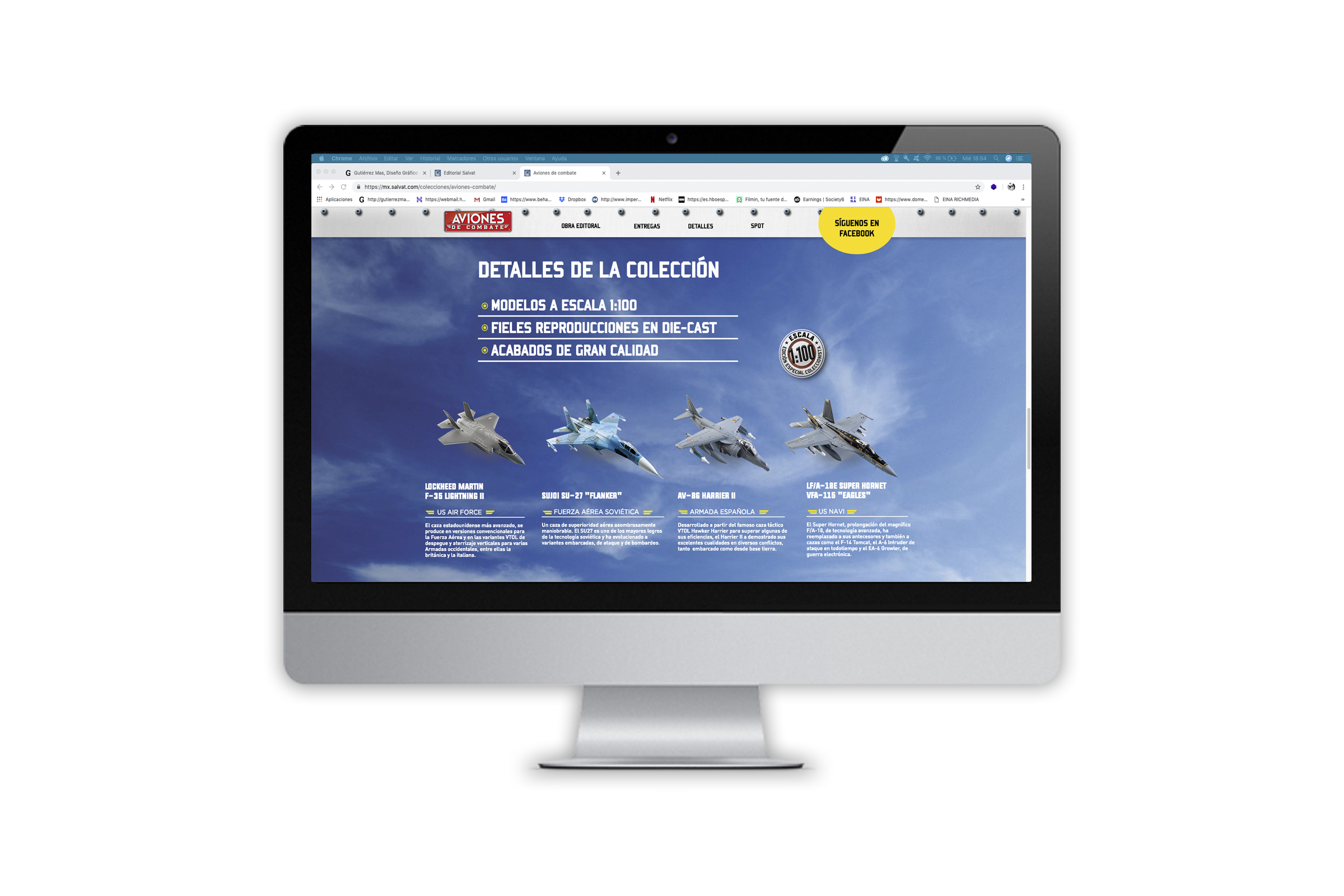 Para Salvat Coleccionables México, y gestionado a través de la agencia de comunicación MT Consulting, se realiza este proyecto de web sobre el coleccionable Aviones de Combate. Diseño del PSD para el programador según la gráfica creada por McLogotipo.