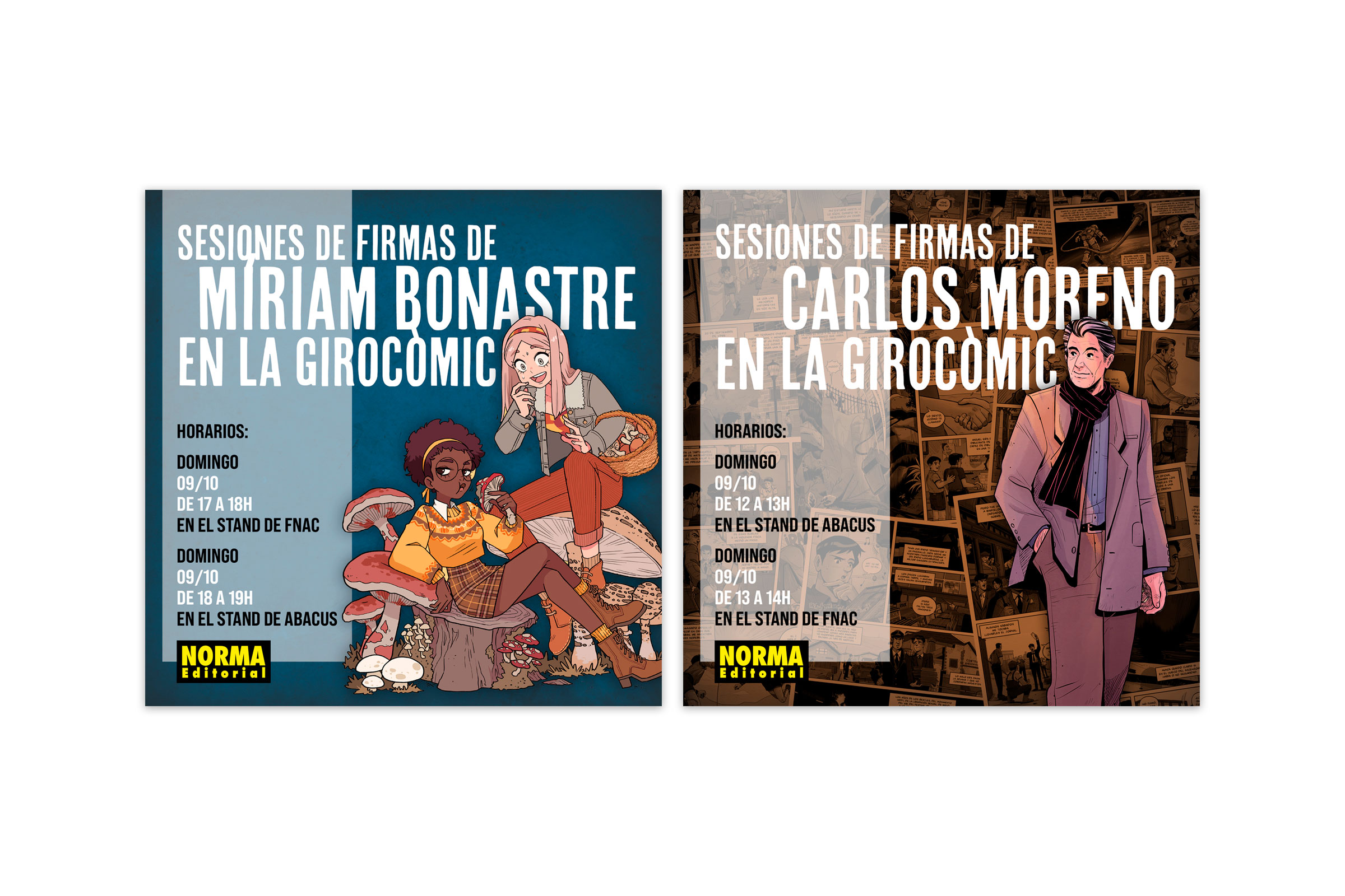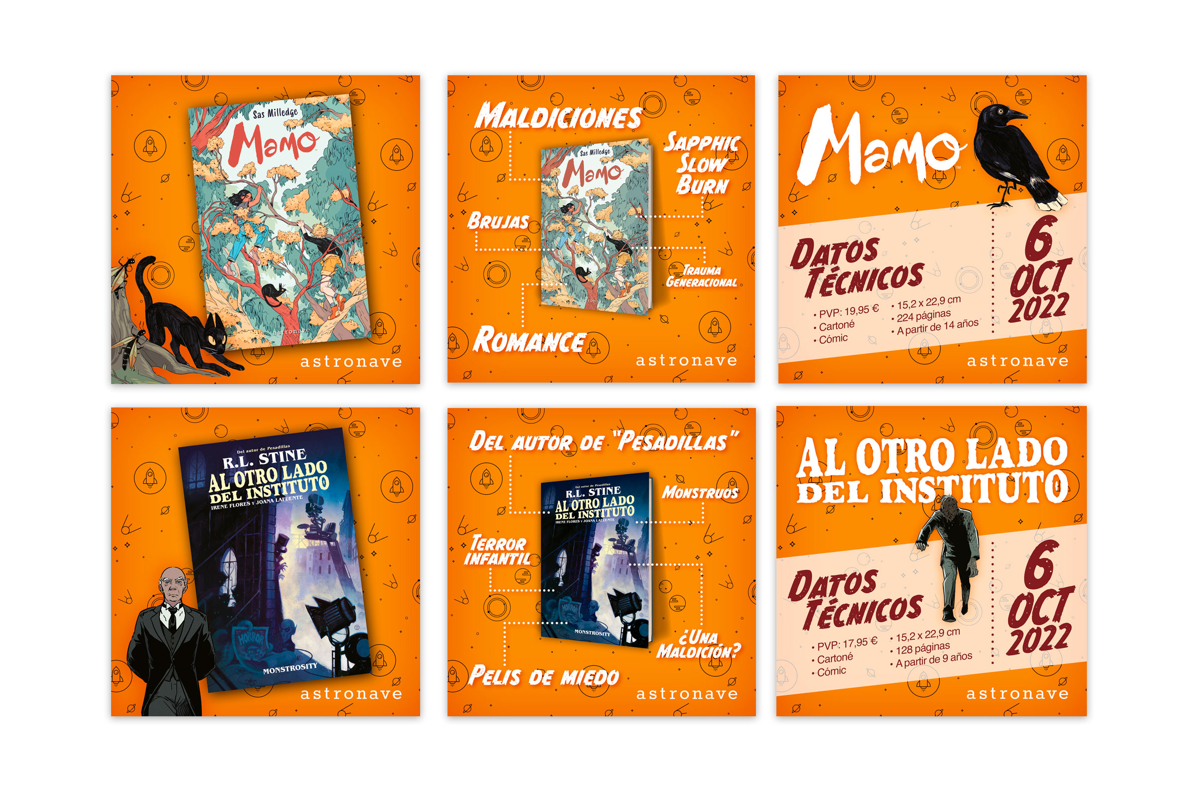 Gráficas para Instagram de las presentaciones de lanzamientos de publicaciones de Norma Cómics + Editorial Astronave.