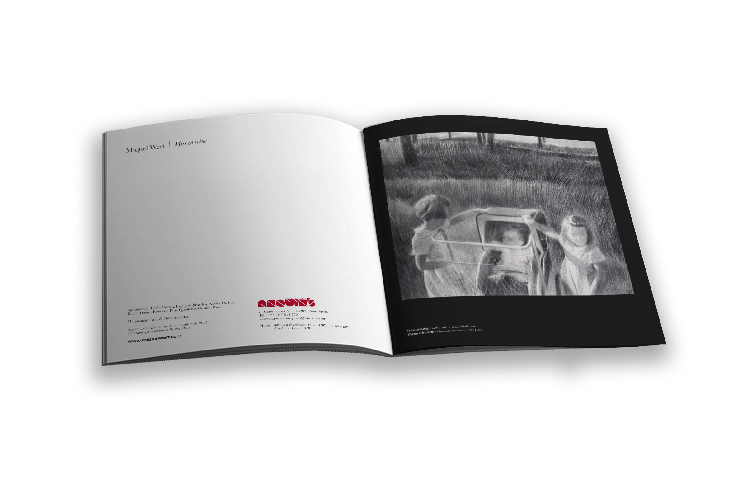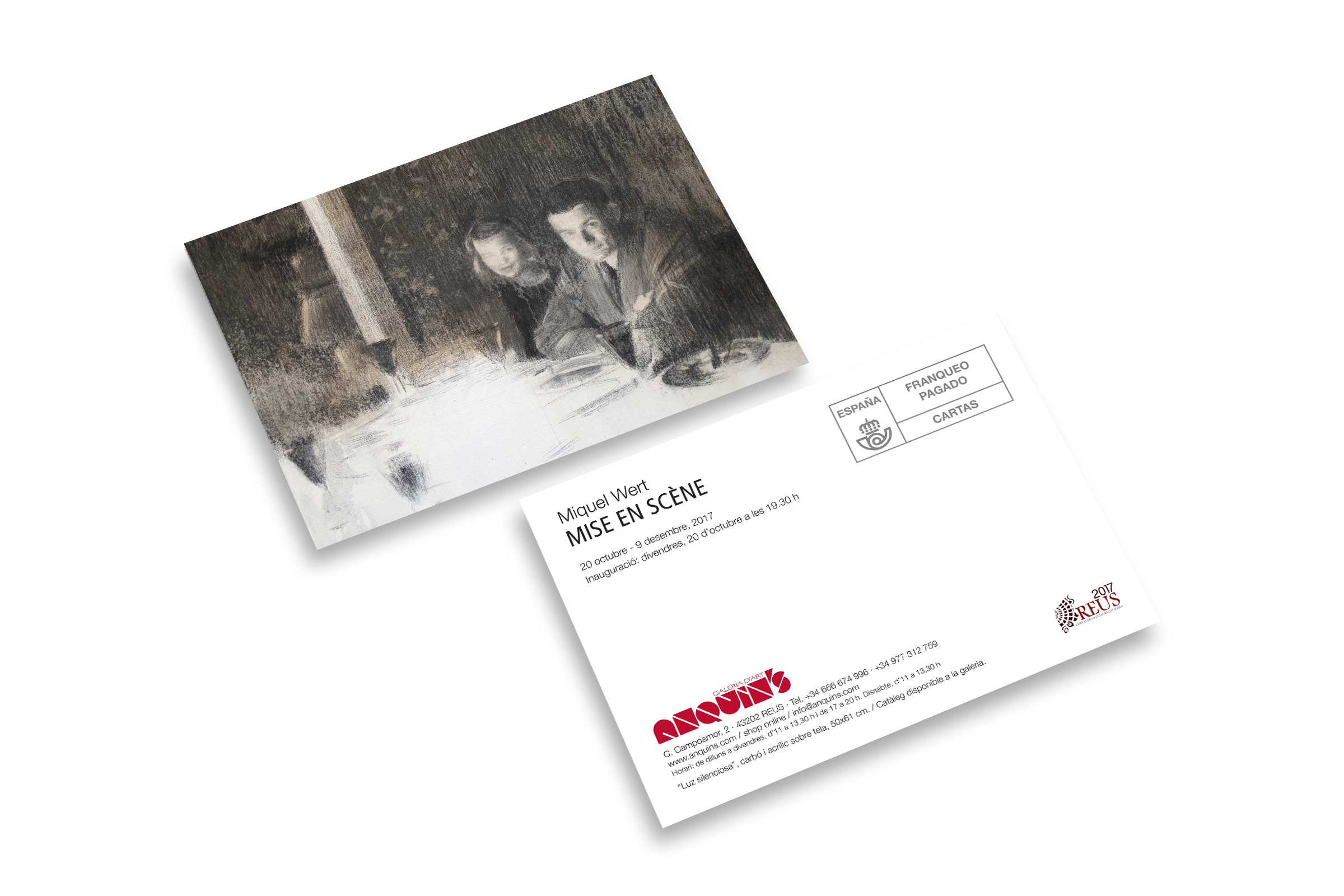 Diseño y maqueta del catálogo para la exposición de pintura del artista Miquel Wert en la galería Anquin's de Reus (Tarragona). También diseño y maqueta de la postal publicitaria.